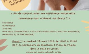 Rendez-vous le 27 mars au périscolaire de Blaesheim pour une soirée d’information juridique organisée par … Lire la suite de Petite enfance : soirée d’info juridique
