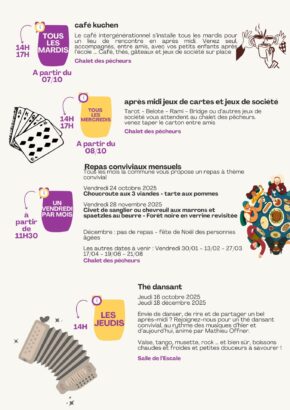À travers une offre variée d’animations, de services et de moments de convivialité, le Pôle Séniors œuvrera pour que chaque personne puisse vieillir dans les meilleures conditions, tout en restant acteur de sa vie et de la vie locale.